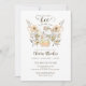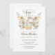 Um convite de chá de fraldas de uma menina branca, doce e aquática, com uma menina e uma abelha de mel mexendo num pote de mel cercado por flores. Perfeito para primavera, verão ou chá de fraldas de outono.