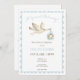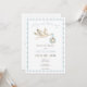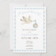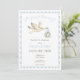 Bem-vindos a um pequeno com encanto de feitiço e zangão. Nosso convite de chá de fraldas encantador apresenta o carregando de cegonha-d'água, seu pacote de precioso, com o título "entrega especial". Um bebê dormindo boia em uma fita azul cercada por duas pombas destaca o dorso. Azulejos suaves, cremes e cinzentos criam uma sensação quente de um livro de histórias sobre um fundo branco nítido. Perfeito por comemorar com um toque de capricho e maravilha! Criado pela imprensa simplesmente de farmácia.