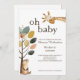 Celebrar a chegada de um pequeno aventureiro com este brilhante convite de chá de fraldas "oh baby"! Perfeito para uma celebração temática na selva ou safari, este design apresenta uma girafa, um monguinho e um pássaro bonitinho com uma árvore colorida, dando o tom para uma divertida e encantadora reunião para dar as boas vindas ao bebê no caminho.