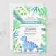 Este encantador convite combina a doçura de um chá de fraldas com a diversão e o entusiasmo dos dinossauros. O design de aquarela apresenta tons de verde e azul, criando uma atmosfera caprichosa e lúdica. O principal foco do convite é uma ilustração encantadora de um dinossauro azul em meio às folhas verde e azul. Essa imagem simboliza a alegria e a antecipação de acolher um novo acréscimo à família. A técnica de aquarela adiciona um toque macio e artístico, fazer este convite realmente especial.