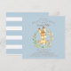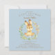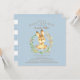 Adorável convite para bebês apresentando um belo coelho bebê cercado por uma coroa de fundo azul para um chá de fraldas para rapazes. Sacudir nosso convite para ver uma coordenação de volta para um toque especial extra.