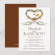 Comece seu chá de fraldas com nosso convite para um chá de bebê. Nosso convite para na moda apresenta um bebê bebezinho num ninho com seu pássaro mãe enrolado com um coração de videira marrom com flores azuis. O convite para o chá de fraldas do ninho de pássaros Trendy & na moda é perfeito para o seu chá de fraldas. Visite-nos em www.celebrateitinvites.com para ver nossa grande seleção de convites para o chá de bebê para meninos e para agradecer aos meninos os cartões de nota, selos postais e autocolantes.