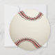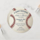 Convite de chá de fraldas em forma de baseball redondo com texto azul para mamãe e pai.