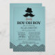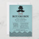 Perfeito para um chá de fraldas temático "Oh Boy", "Little Man" ou "Mustache"! Nosso convite para bigode bonito e moderno apresenta um chapéu de topo, bigode e gravata de arco em um fundo azul com uma borda de fevron preta. Sacudir o convite para ver uma correspondência de volta para um toque extra especial.