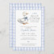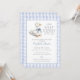 Este encantador convite para chás de fraldas apresenta um ganso bonito e um fundo de gingham azul. Projetado por Thisnotme©