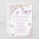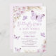 Borboleta Floral Roxa Boho Beija Chá de fraldas Convite Beijos borboletas Roxas bebê deseja convite para chá de fraldas com várias borboletas, flores e grama-pampas. Este chá de fraldas temático da borboleta também apresenta alguns pontos de ouro falsos.