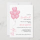 Convite para chá de fraldas com script elegante e balões de aquarela cor rosa