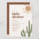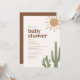 Convide amigos e família para comemorar um pouco no caminho com esse convite de chá de fraldas boho, apresentando cactos e sol de aquarela em cores quentes.