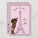A elegante princesa de vintagem rosa-elegante das raparigas Eiffel Torre convida para um chuveiro de bebês, com uma bela ilustração vintage de uma linda e adorável menina africana/escura/pele escura/escura, de cor rosa-na moda, coroa princesa doce, coelhos-coelhos-doce, fralda cor-de-rosa, e um arco cor-de-rosa, ao lado da Torre Eiffel parisiense, em França Fundo de gradiente rosa bonito com uma borda de bolinhas preta. Ooh La La É uma mensagem de garota está consertada. Chic, trendy, glamourosa, giro, diversão, barato personalizado / personalizado convites para Chás de fraldas de meninas personalizadas da Princesa Paris / chás temáticos da Princesa. Uma pequena Princesa está a caminho! Decorado de ambos os lados. As costas têm o mesmo design e também um arco rosa e uma imagem de diamante fofinhos. Impressão frente e verso. Se precisar de assistência para personalizar seu produto, entre em contato comigo através da minha loja e eu ficarei feliz em ajudar. NOTA:- Todos os convites no Zazzle têm imagens impressas em formato plano.