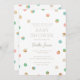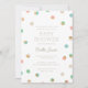 Uma dispersão de pontos pastéis bonito em aqua, verde-menta, cor-de-rosa-coral e bronzeado com acentos de folha de cobre falsa faz deste convite para o chá de fraldas uma escolha na moda para a sua mãe quica e moderna ser. O texto fácil de editar permite a máxima flexibilidade de design, enquanto um código QR envia os convidados diretamente para o registro on-line para fácil compra de presentes. As cores podem ser neutras em relação ao gênero ou funcionar para uma menina ou um menino sem ser delicado.