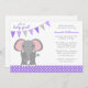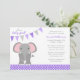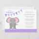 Convites Chá de fraldas de Bolinhas de Elefante Roxo