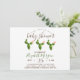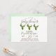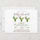 Convites de chá de bebê bonitos com cactos de aquarela no topo com bolinhas verdes.