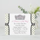 Elegante e adorável convite de chá de fraldas preto-rosa. Este convite à chá de fraldas da princesa rosa e bolinhas preta bonito apresenta uma bonito tiara rosa e prateada com bonito fita preta estudada com jato de diamante sobre fundo bolinhas preta. Este doce convite para chás de fraldas cor-de-rosa e preto é facilmente personalizado para o seu evento, simplesmente escolhendo o botão laranja "Personalizar!" para começar a adicionar os detalhes do evento, estilo de fonte, tamanho de fonte e cor e texto. Observe que todos os designs de cartas e convites que você encontrará no Zazzle são gráficos impressos sem joias reais, arcos, levantados, gravados em relevo ou peças ou peças adicionadas.