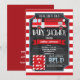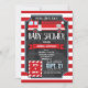 É um menino! O tema do carro de bombeiros é bonito, divertido, convite para chá de fraldas em um padrão elegante de listras brancas e vermelhas. Apresenta o caminhão de bombeiros vermelho, branco e cinza. Excelente ano de rodada para primavera, verão, outono ou bombeiro de inverno, caminhão de bombeiros, caminhão de bombeiros, chás de fraldas bombeiros.