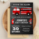 Incêndios aos seus convidados com este legal chá de fraldas, convidando com um belo caminhão de bombeiros e um belo equipamento de combate a incêndios contra um fundo de chalkboard. Basta adicionar os detalhes do seu evento neste modelo fácil de usar para torná-lo um convite de tipo único. Sacudir a placa para revelar um padrão elegante de listras vermelhas e pretas na parte traseira da placa.