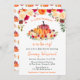 Este convite de chá de fraldas de aquarela fofo e divertido apresenta abóboras em laranja e vermelho farrado com belos arranjos florais. O texto combina o script manuscrito e as fontes sans serif para uma aparência na moda e moderna. Isto é perfeito para um chá de fraldas de outono. Gráficos por www.etsy.com/uk/shop/SunflowerDayLove