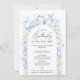 Chá de fraldas de Borboleta Azul Moderno Invitation Boys azul, roxo e amarelo, uma borboleta está no caminho de um convite para chás de fraldas com arco, flor selvagem e seis borboletas azuis. Este convite floral para chá de fraldas de borboletas é ideal para um chá de fraldas de primavera ou de verão.