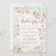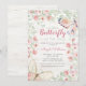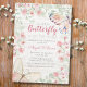 Palha-rosa, Rustic Watercolor Floral Butterflies Girl Chá de fraldas Invitation. Apresenta borboletas agudas de cor aquosa, flores e folhagem verde no painel de madeiras brancas rústicas. Perfeito para um tema fofo, "é uma menina", verde, rosa, branco, floral, rústico, borboleta e chá de fraldas tropical.