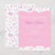 Um convite clássico, elegante e moderno ao chá de fraldas que tem uma variedade de folhas, flores e borboletas dispostas como padrão. A paleta colorida de rosa e roxo é mais adequada para meninas e é excelente para temas de jardim, borboletas e chás de fraldas. Personalize facilmente com os detalhes do seu partido.