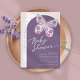 Convite para Chá de fraldas de Borboleta Floral Rosa Púrpura O design da borboleta está em uma variedade de pínks, romas e blues empoeirados. O fundo está em um arco duplo em roxo e branco, com um sutil padrão de tratice ao redor da fronteira. O texto curvo pode ser editado na Ferramenta de Edição, se você quiser alterá-lo para incluir o nome do bebê, por exemplo. Todas as cores (exceto a própria borboleta) podem ser alteradas e todos os outros elementos podem ser movidos, excluídos ou recoloridos, para que você possa criar um convite exclusivo apenas para você! © Kimbellish, LLC