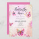 O convite para o Chá de fraldas da borboleta cor-de-rosa apresenta borboletas cor-de-rosa e rosa e douradas com efeito de brilho dourado e fundo pastel de aquarelas moles. A inscrição no rico do script lê Beijos borboletas. O convite para o tema do chá de fraldas da borboleta é tão especial quanto a mãe a ser. Celebrar a chegada de uma menina precioso com este belamente projetado convite para chás de fraldas com um tema de borboleta branca. Com a encantadora frase "Beijos borboletas e desejos de bebês", este convite captura a magia e a maravilha de novos começos. A aquarela cor-de-rosa macia e as delicadas ilustrações da borboleta o tornam perfeito para um chá de fraldas ou inspirado na natureza, definindo o tom para uma celebração doce e memorável. Ideal para pais espertos que querem adicionar um toque de elegância e charme inspirado na natureza ao seu chá, estes convites são perfeitos para aqueles que amam designs femininas e suaves. Um presente de excelente para um amigo, irmã ou membro da família planejando um chá de fraldas, ou para qualquer um que queira enviar um convite criativo e atencioso para celebrar a chegada de uma garotinha. Quer você esteja hospedando ou participando, este convite adiciona um toque pessoal e atencioso à ocasião especial.