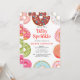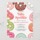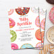 Enviar convites para o seu chá de fraldas com este cartão personalizável. Tem rosquinhas bonito com borrifadas coloridas. Torne-o especial adicionando o nome do bebê, a data, a hora e o local. Este convite temático de rosquinha é perfeito para o chá de fraldas de uma menina.