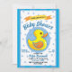 Convites Chá de fraldas de Brinquedo de Pato de Borracha Az