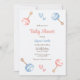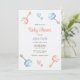 Uma Pequena Bênção está a caminho! Convite para Chás de fraldas Bonito Apresentando nosso encantador convite para chás de fraldas, exclusivamente no Zazzle! Este convite encantador apresenta uma ilustração caprichosa de brinquedos para bebês azuis e cor-de-rosa e corações bonitinhos