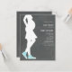 Um convite de chá de fraldas com uma ilustração de uma silhueta de uma mãe para estar com um bebê bump e tênis de topo azul. O plano de fundo é inspirado no quadro. Personalize o texto com detalhes da sua ocasião.
