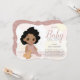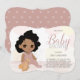 Convite para Chá de fraldas de Cabelo Curly 3, convite para chá de fraldas rosa, com uma adorável menina com um pacificador rosa, vestindo um pijama de bolinhas rosa e segurando um cobertor de segurança de ursinho de pelúcia giro. Esta ilustração única apresenta lindos cabelos encaracolados pretos, grandes olhos castanhos e um fundo pastel hexagônico. Este convite está disponível em diferentes tons de pele. Pacote de Convite Correspondente: https://www.zazzle.com/collections/pink_ethnic_baby_shower_invitation-119134002205565072