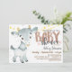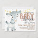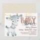 Cabra, fazenda, convite para chás de fraldas. As cores incluem castanho, bronzeado, cinza e branco.