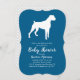 Inclua o grande irmão ou irmã bebê pelado na comemoração com este adorável design de cão Boxer! Perfeito para um amante de cachorrinho com um bebê a caminho. O Boxer está ao lado de uma adorável carruagem de safra. O azul torna isso perfeito para um menino no caminho!