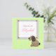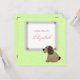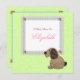 Personalize adicionando seu nome de bebê a este belo convite para chá de fraldas de moça no estilo country com uma imagem de um colcha como cão marrom gingham, rendas, rosas e um quadro verde pastel. Um presente de festa de bebê do tema correspondente disponível na loja de presentes de Designs PhotoicsTK.