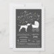 Inclua o grande irmão ou irmã bebê pelado na celebração com este adorável design de chá de fraldas de cachorro ponteiro! Perfeito para um amante de cachorro com um bebê a caminho. O ponteiro está ao lado de uma carruagem adorável. O fundo de cinza de quadro-negro torna-o perfeito para um chá neutro ou coeso!