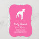 Inclua o grande irmão ou irmã bebê pelado na comemoração com este adorável design de chá de fraldas Whippet! Perfeito para um amante de cachorrinho com um bebê a caminho. O Whippet está ao lado de uma adorável carruagem de colheita. O rosa o torna perfeito para uma menina no caminho!