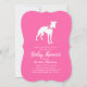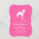 Inclua o grande irmão ou irmã bebê pelado na comemoração com este adorável design de chá de fraldas Whippet! Perfeito para um amante de cachorrinho com um bebê a caminho. O Whippet está ao lado de uma adorável carruagem de colheita. O rosa o torna perfeito para uma menina no caminho!