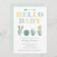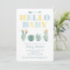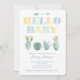 Sombras de verde com amarelo ensolarado para estes convites para Bebê-Chuveiro contendo cactos aquarelas / imagens de pera espinhosas.