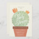 Design de convite a chá de fraldas de trigo por Stacey Meacham, com uma ilustração de cacto de cor aquosa desenhada à mão original, com botões florais brilhantes num pote de terracota.