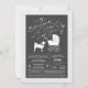Inclua o grande irmão ou irmã bebê pelado na celebração com este adorável design de chá de fraldas de cachorro Shiba Inu! Perfeito para um amante de cachorro com um bebê a caminho. A Shiba Inu está ao lado de uma adorável carruagem vintage. O fundo de cinza de quadro-negro torna-o perfeito para um chá neutro ou coeso!