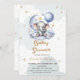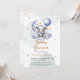 Convite de chá de fraldas de menina virtual único, com ursos de pelúcia, estrelas, lua, balão e nuvens.