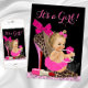 Calçado de chá de fraldas de alto salto, rosa-quente, leopardo-alto, convite com adorável menina vestindo um tutu rosa quente e uma bonito corda de pérolas em um lugar elegante, garrafa de perfume preto e rosa, batom vermelho e leopardo rosa alto e fundo do calçado do salto alto. Este bonito convite de chá de fraldas de calçado de alto salto, rosa-quente, é facilmente personalizado para o seu evento, adicionando detalhes do seu evento, estilo da fonte, tamanho e cor da fonte e texto. Você também pode mudar a cor de fundo neste convite de chá de fraldas-leopardo rosa giro.