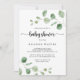 Convites Chá de fraldas de Caligrafia Eucalyptus Green Deli