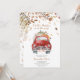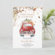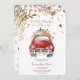 Celebre o seu próximo pacote de alegria com este encantador Convite de Chá de fraldas de Caminhão de Pumpkin Vermelho. Este design branco apresenta um caminhão vermelho vintage que flui com abóboras brancas, laranja e verdes, emoldurado pela folhagem de queda suave em tons sazonais quentes. Perfeito para uma reunião confortável de outono. BBS330