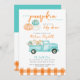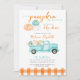Watercolor A Little Pumpkin Orange & Turquoise Pumpkin Harvest Truck, Fall Pumpkin Patch com o padrão Orange Gingham com fralda raffle e livros para bebê no retorno do convite
