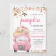 Celebre a chegada da sua garotinha com nosso adorável convite para Chá de fraldas de caminhonete Rosa Pumpkin! Este encantador convite apresenta um carregando de caminhão rosa vintage uma mistura deliciosa de abóboras cor-de-rosa e laranja no fundo. O design é acentuado com folhas brancas e flores cor-de-rosa que enquadram o convite, acrescentando um toque de charme no outono. BBS458