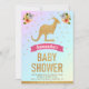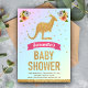 Incêndio aos seus convidados com este belo convite para chás de fraldas do tema canguru com a tipografia moderna num fundo pastel de gradiente do arco-íris. Basta adicionar os detalhes do seu evento neste modelo fácil de usar para torná-lo um convite de tipo único. Sacudir a placa para revelar um padrão falso de faixas de brilho dourado na parte traseira da placa.