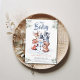 Um adorável e fofo convite para o chá de fraldas de inverno com tema de inverno, com uma cena de inverno com animais de floresta (urso, guaxinim, raposa, veado, coruja) em torno de um bonitinho bonitinho, pintado em aquarela e decorado com alguns ramos de folhagem de inverno. A caligrafia cômoda arredonda design, perfeita para um chá de fraldas de inverno para uma mãe que ama personagens bonitinhos de inverno, o tema do boneco de neve, o tema da floresta e designs de ilustração.