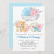 Azul pastel chic e ursinho de ameixa floral cor-de-rosa cor-de-rosa com carrinho floral. Este é um ajustado de convite para um pequeno príncipe!