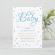 Apresentando um roteiro azul Oh Cabeçalho do bebê, bonito corações de amor azuis estão espalhados em torno de seus detalhes personalizados, definidos em na moda no texto deste chá de fraldas chic, borrifador ou convite para chá de casais. Projetado por Thisnotme©