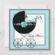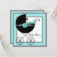 Cinzas de prata elegantes e convites para chuveiros de bebê preto e azul lacrimejo. Carruagem preta elegante com convite para chá de fraldas de bebê design azul de prata e turquesa. Adicione os seus detalhes à frente e/ou atrás adicionando os detalhes do evento, estilo da fonte, tamanho da fonte e cor e texto.